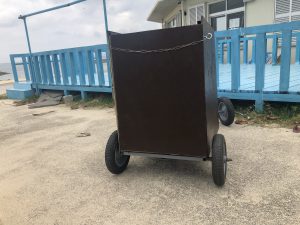 宇堅ビーチのBBQ器材はキャスターが付いていて移動できるタイプなのですが、